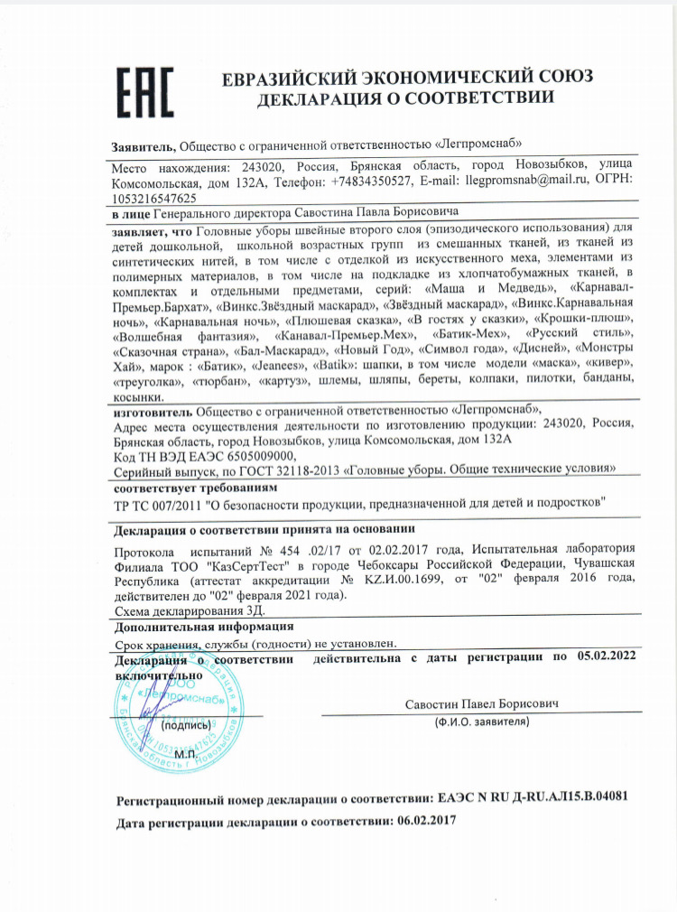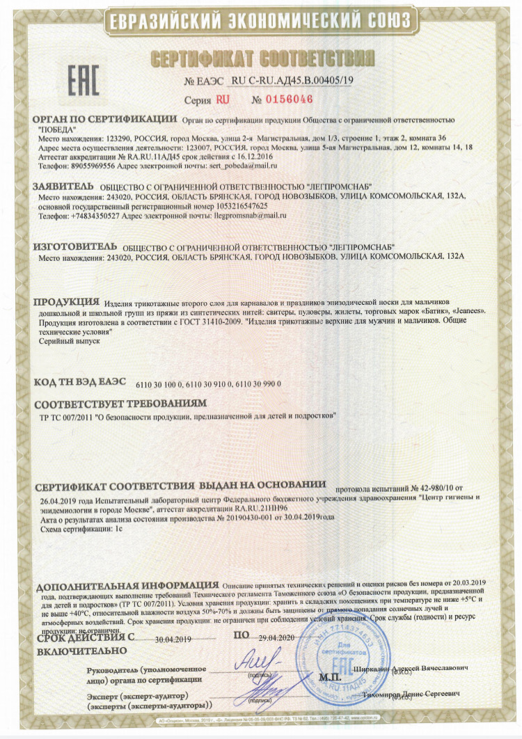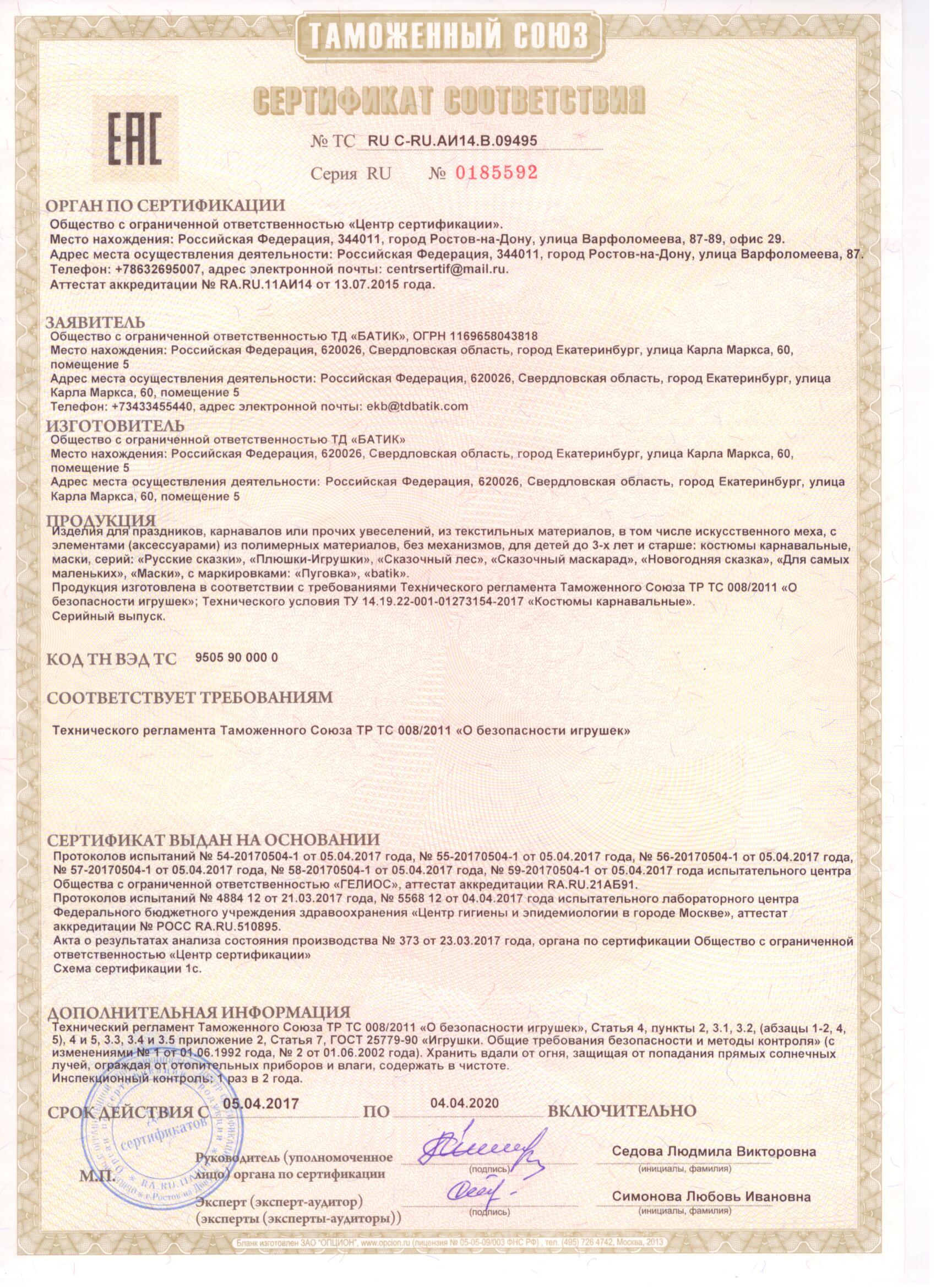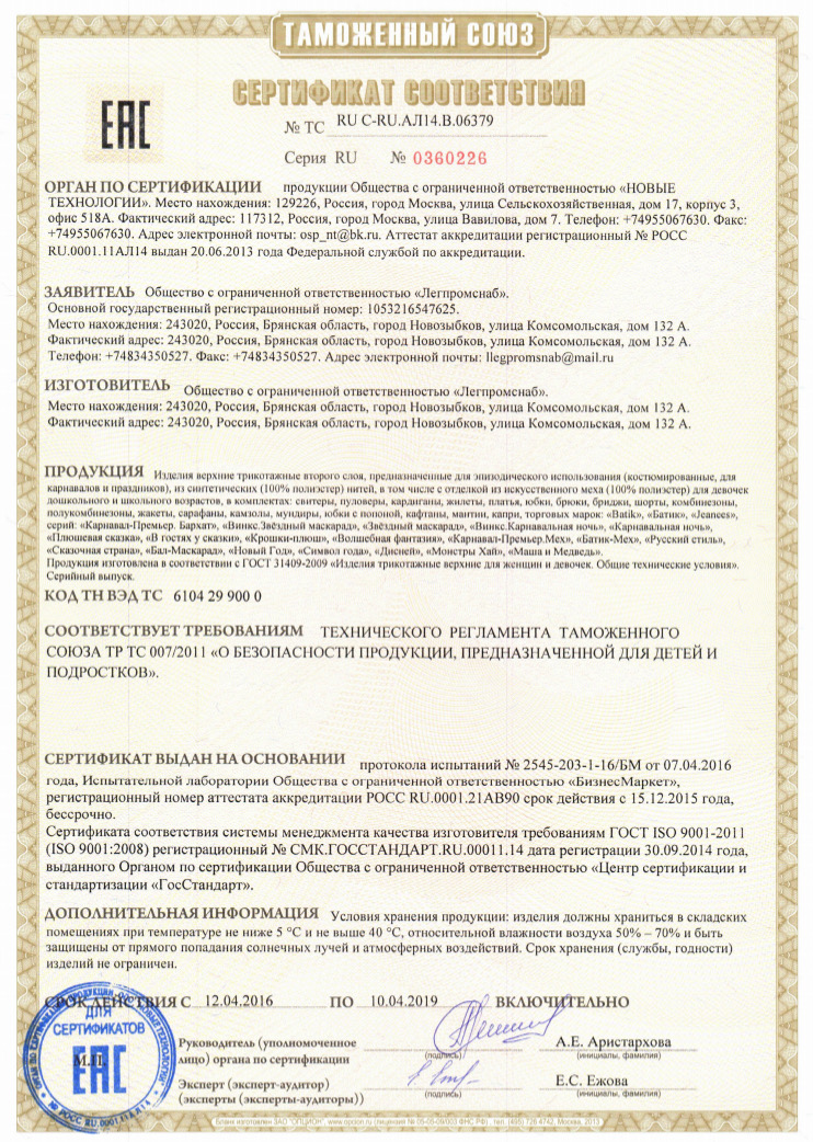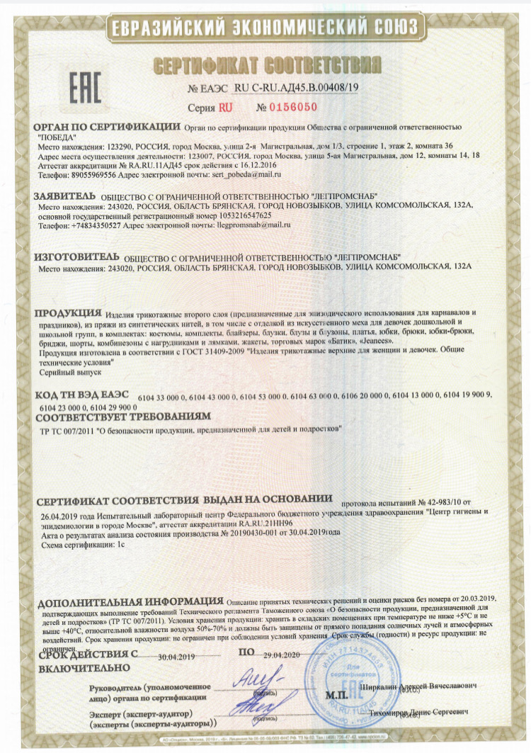 Мы выбираем только костюмы, произведенные лучшими российскими компаниями, и имеющие все необходимые сертификаты.