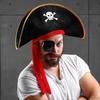 Устрашающий череп на головном уборе без лишних слов даст понять, кто на борту главный. Аксессуар украшен лентой, которую можно завязать сбоку. Её красный цвет добавит вам воинственности и отваги. Этот красочный образ подойдёт для Хэллоуина, пиратских, морских вечеринок и тематических фотосессий. Отдыхайте ярко!