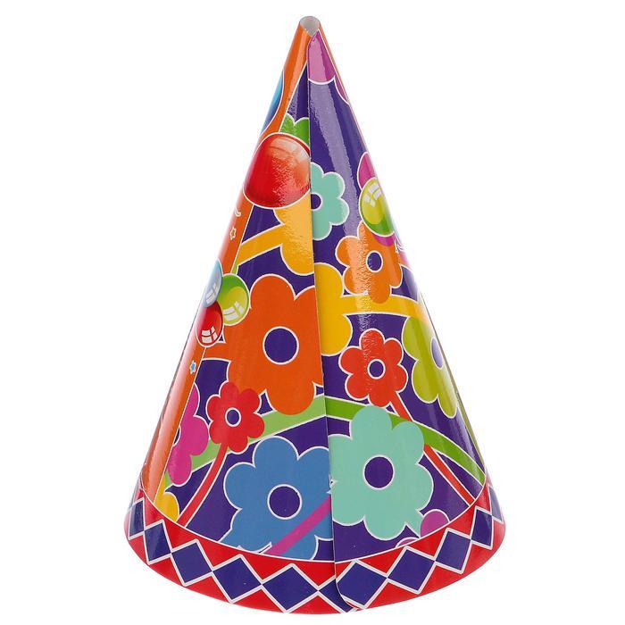 Набор бумажных колпачков с изображением тортика на День Рождения. 6шт.