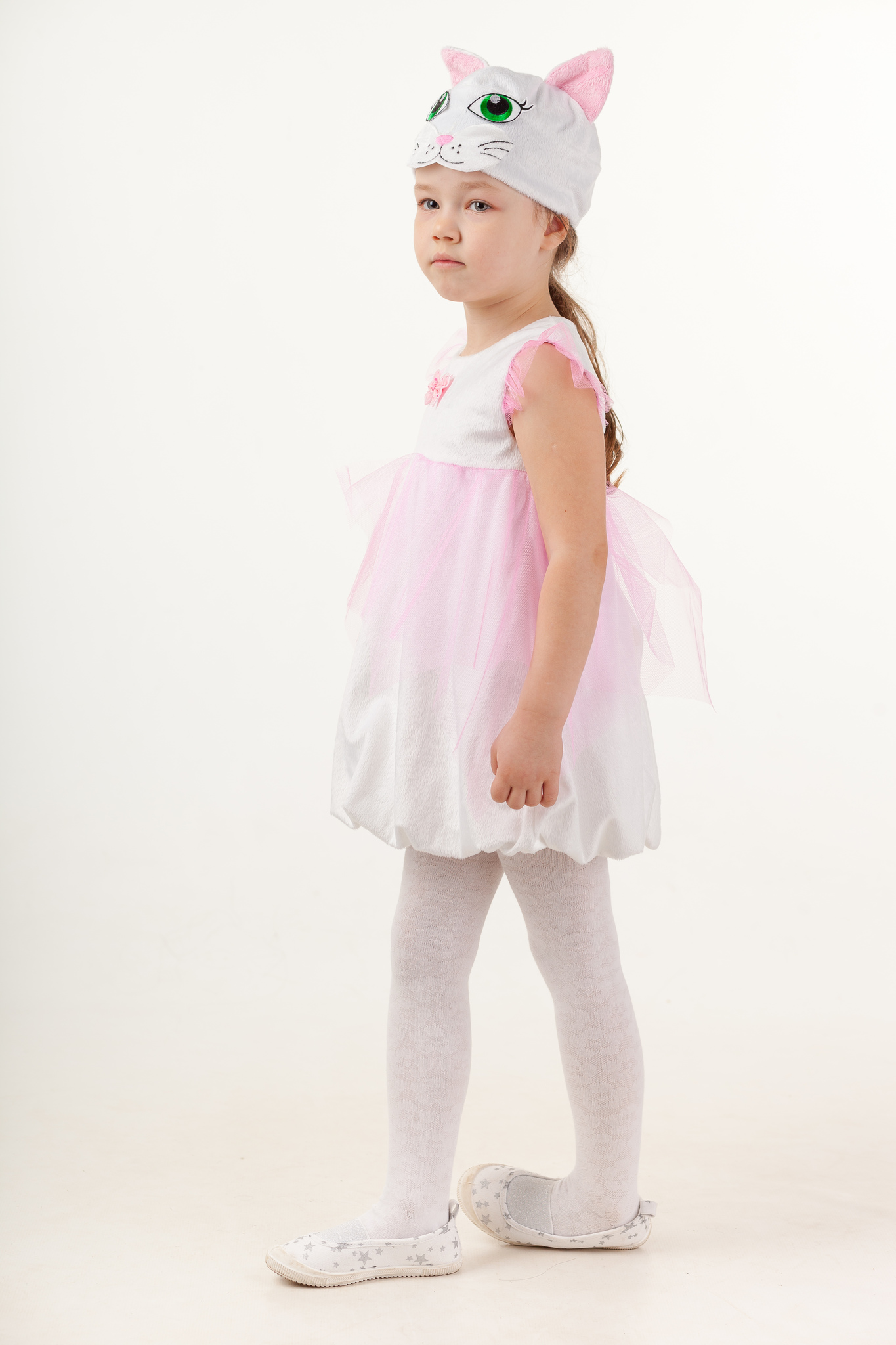 Костюм состоит из платья и шапочки в виде симпатичной мордочки кошечки: