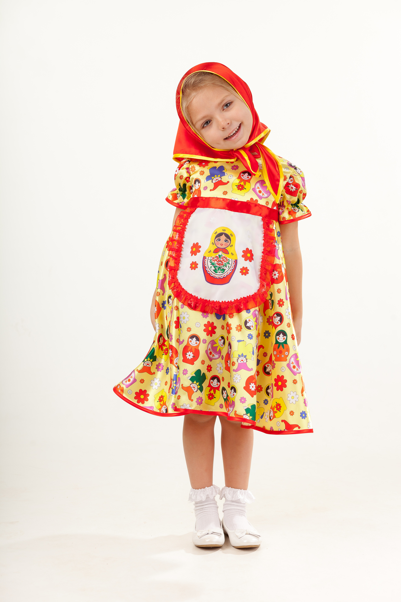 Платье любимицы всех деток, знакомой игрушки в народом стиле создаст очаровательный и легкоузнаваемый образ Матрешки для вашей девочки. Подойдет на любой праздник.