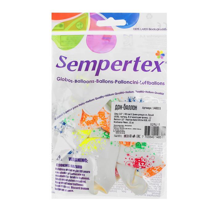 Шар белый "С Днем Рождения" Неон 12 шт