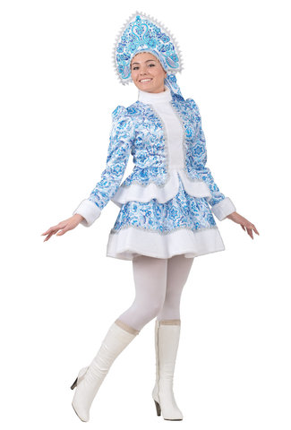 Дополните костюм Снегурочки Гжель белыми колготками или высокими каблуками и Вы, без сомнения, станете звездой любого корпоратива!