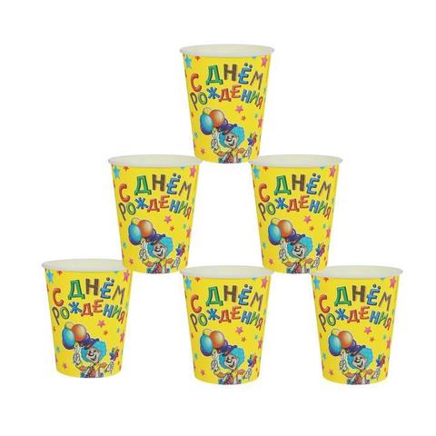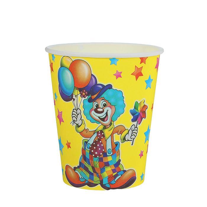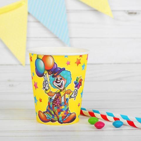 Набор бумажных стаканчиков с изображением клоуна с воздушными шариками. 10шт.