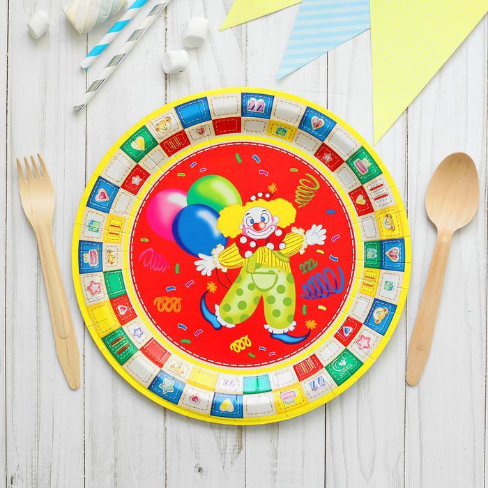 Набор бумажных тарелок с изображением клоуна с воздушными шариками. 10шт.