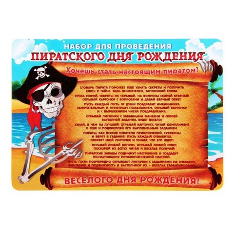 Викторина "Пиратский День Рождения" для детей от 7 лет. В наборе 9 карточек.