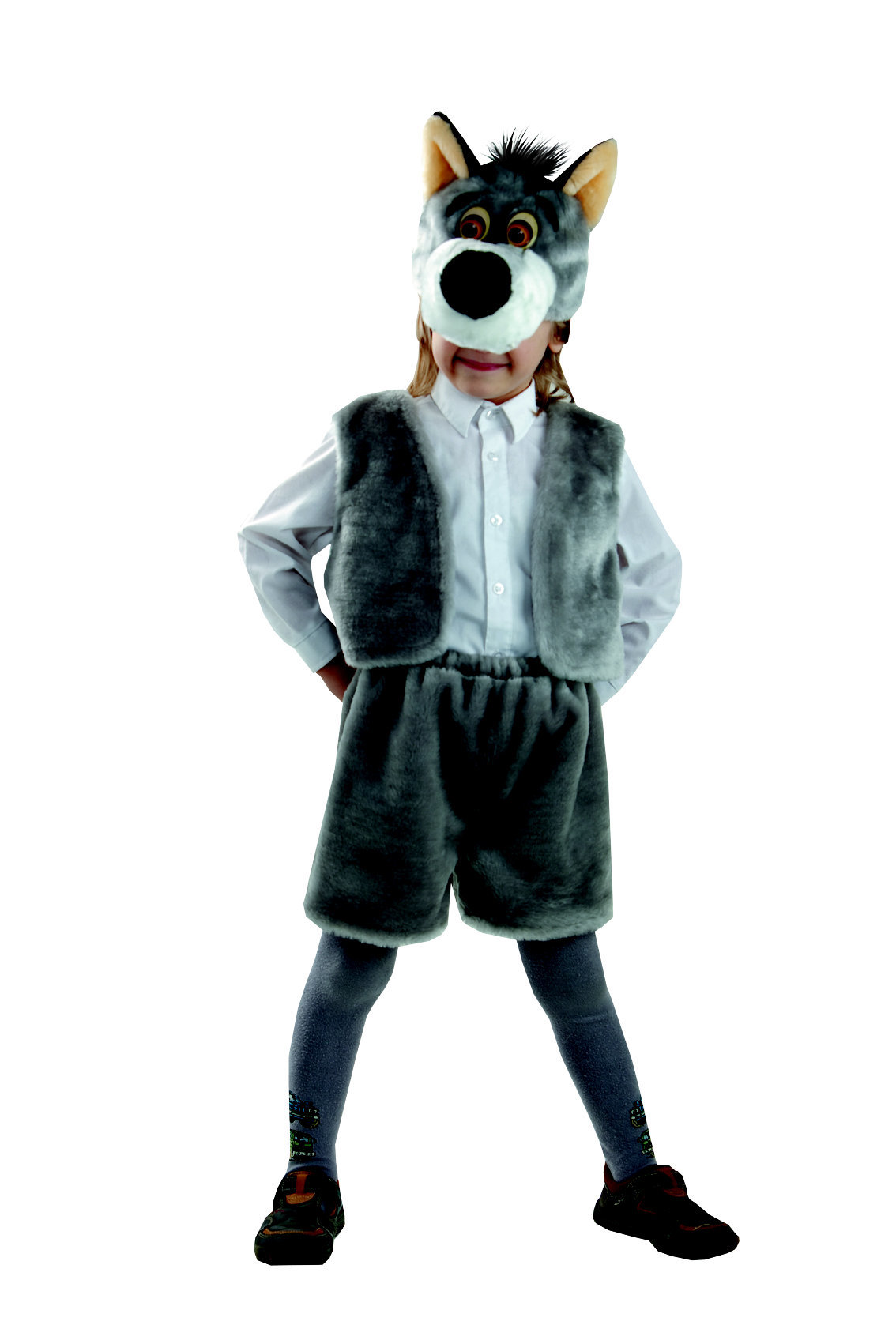 Дополните костюм Серого Волка колготками черного, а лучше темно-серого цвета, и белой рубашечкой, и Ваш маленький Волчонок готов к празднику!